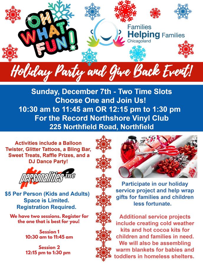 We want to grow our community and need your help! Tell your friends and family about the great work being done by FHFC. The more people who know about us, the more support we have available to help families in the Chicagoland area. Follow and share us on Facebook @ fhfchicagoland