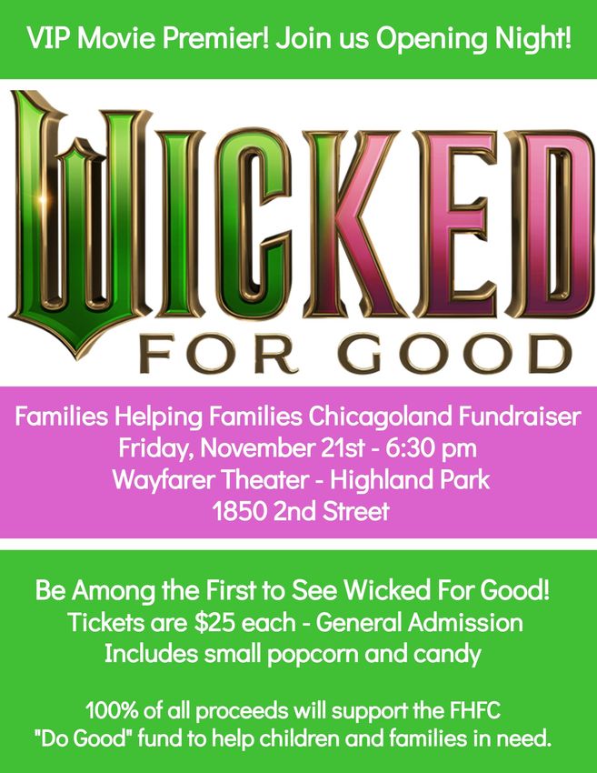 Join Families Helping Families Chicagoland for an unforgettable Movie Night Fundraiser celebrating the opening night of Wicked: For Good!